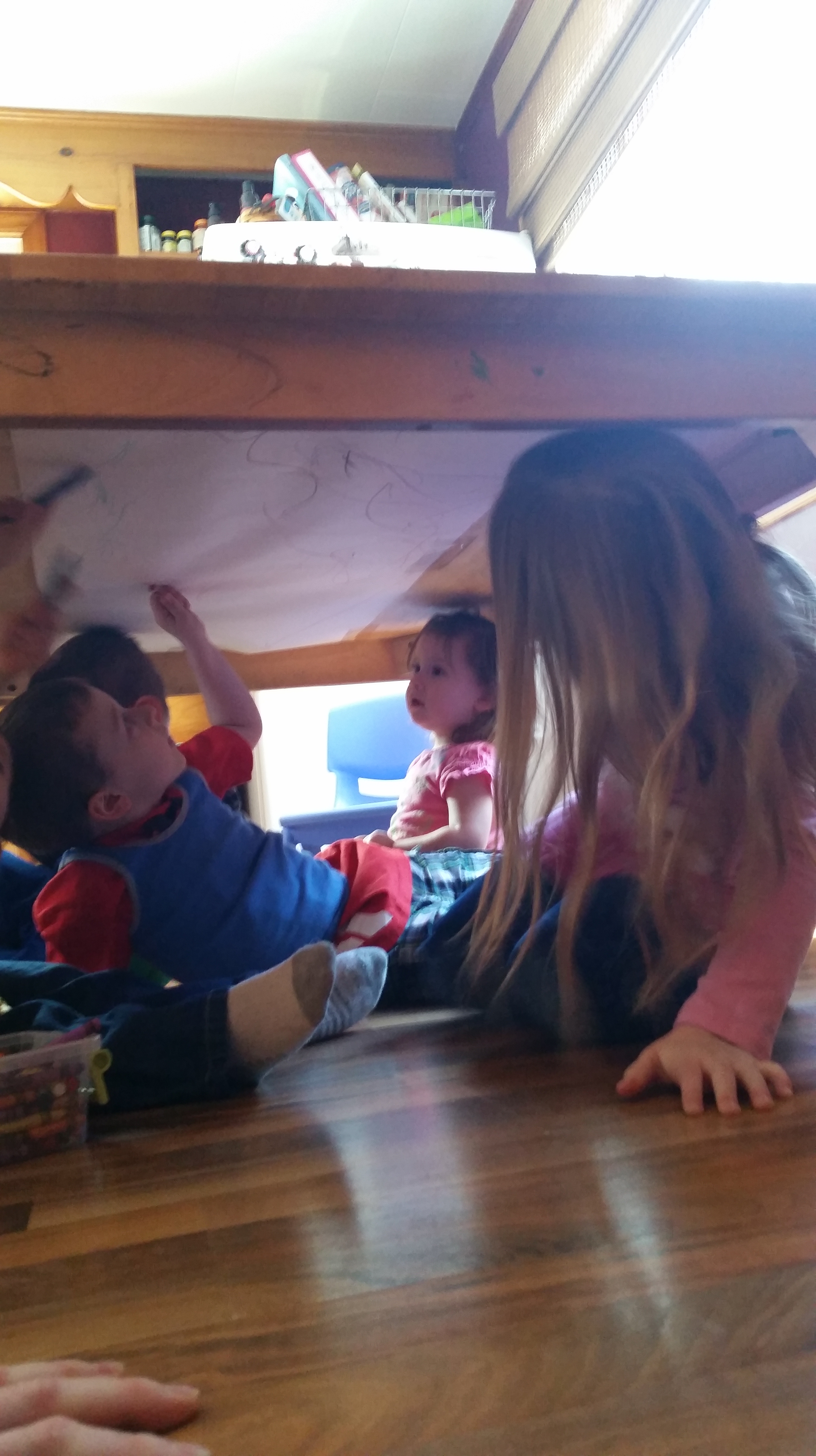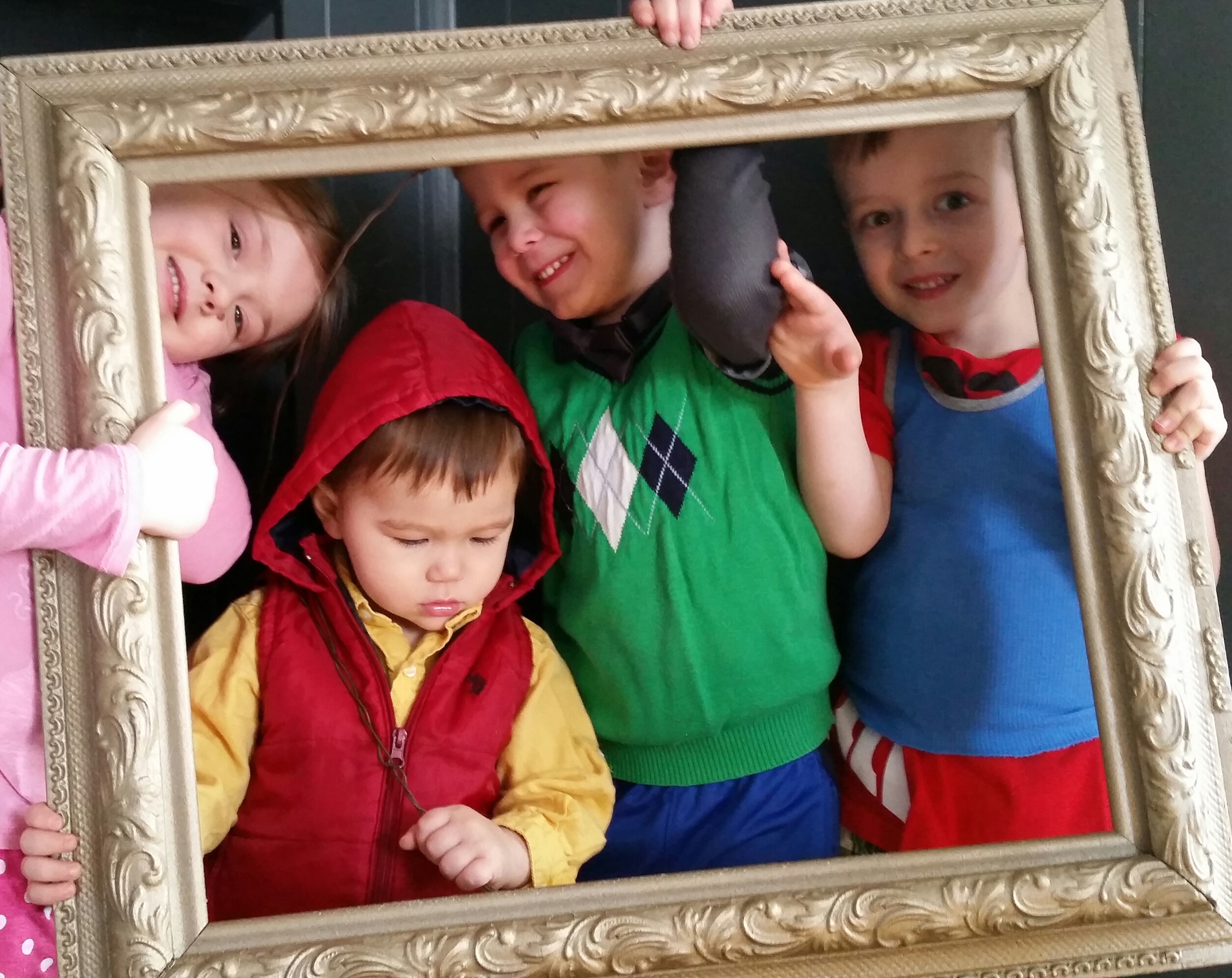 Following with our Dr Seuss fun this week, today was Wacky Wednesday. Have you ever read that book? The kids LOVE picking out all the wacky things on the pages. Before I introduced the book I had the kiddos search all around the house for things that looked wacky. They found a shoe on the wall, socks in the tissue box, socks hanging from our plant and mirror, bananas in a water pitcher, and “donkey tails” on a frames throughout the house. They (kids) came dressed all wacky to go with our theme for the day, and let me tell you…..they were rockin’ those clothes! I wish the picture below showed more of their outfits, because they were awesome! This morning was SOOO much fun!