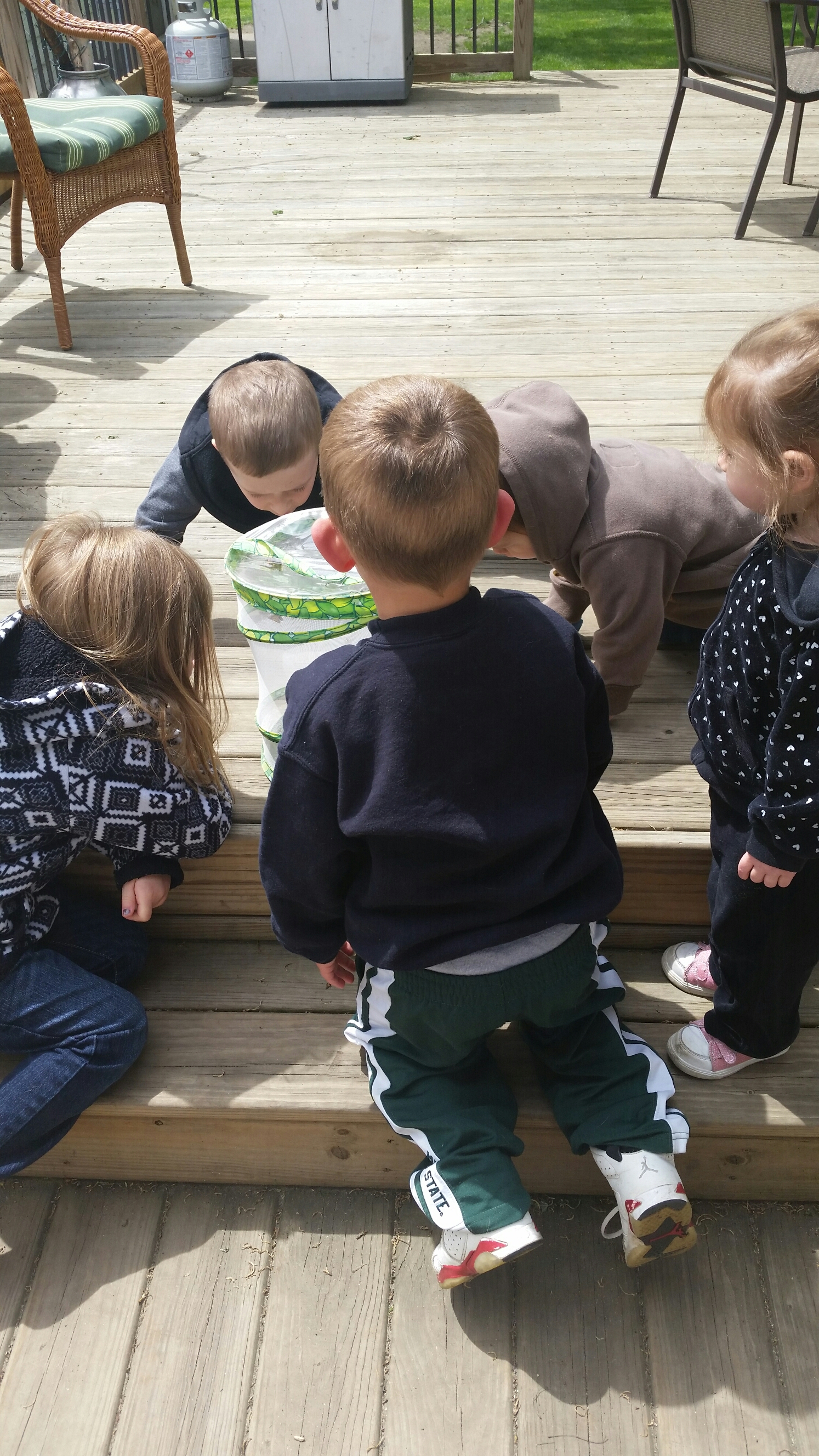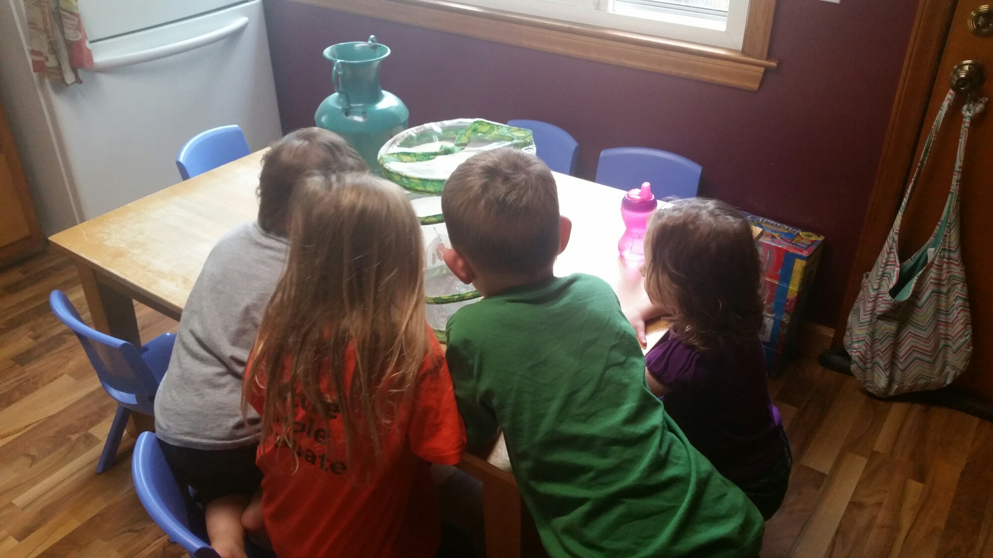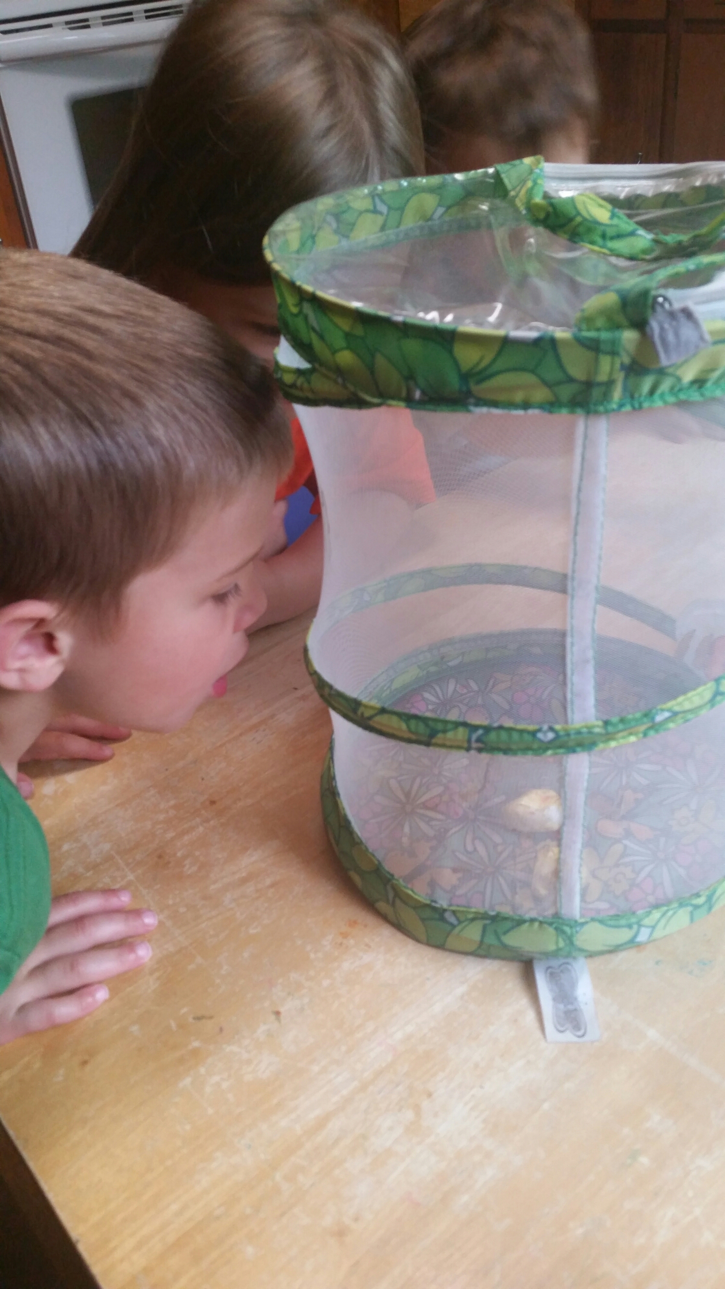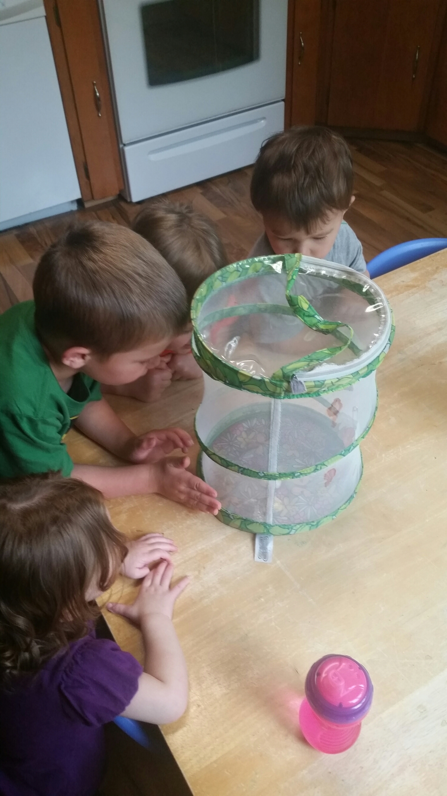 We received our caterpillars over a week ago now and the kids have had a great time watching them eat the food and grow bigger and bigger! The kids were so excited when they came in this week to see the caterpillars had become Chrysalides (cocoons). We’ve placed the chrysalides into the butterfly habitat and now the next step is for them to work their magic and turn into beautiful butterflies, which usually takes 7-10 days. The kiddos have been watching them and then recording their findings in their butterfly notebook. They are learning how to observe and record what they see/think by drawing pictures and some are even writing some words with help. I can’t wait to see their little faces when we have butterflies!