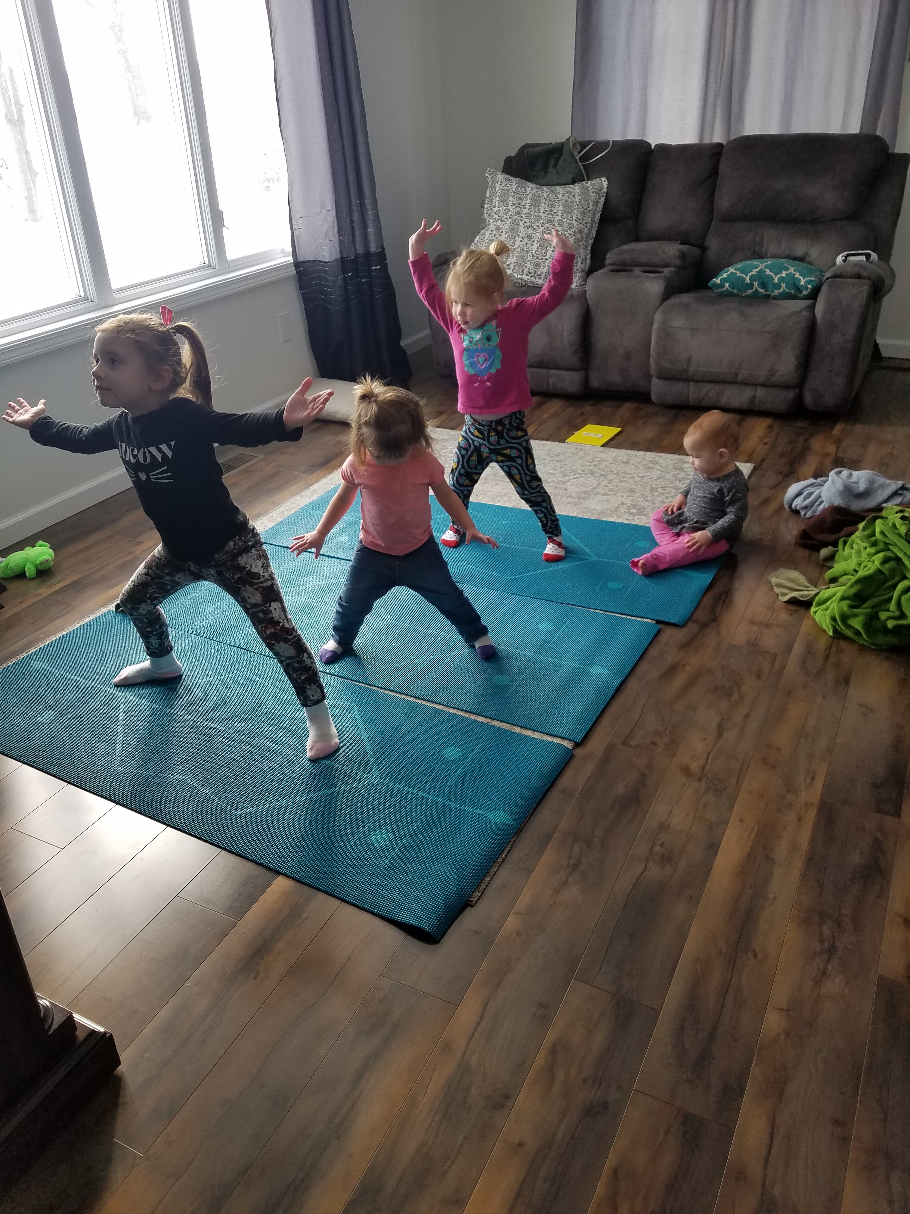 I love their love for yoga. Such a great way to calm our bodies, yet still work our large muscles when we can’t get outside. These girls are good at the poses too!